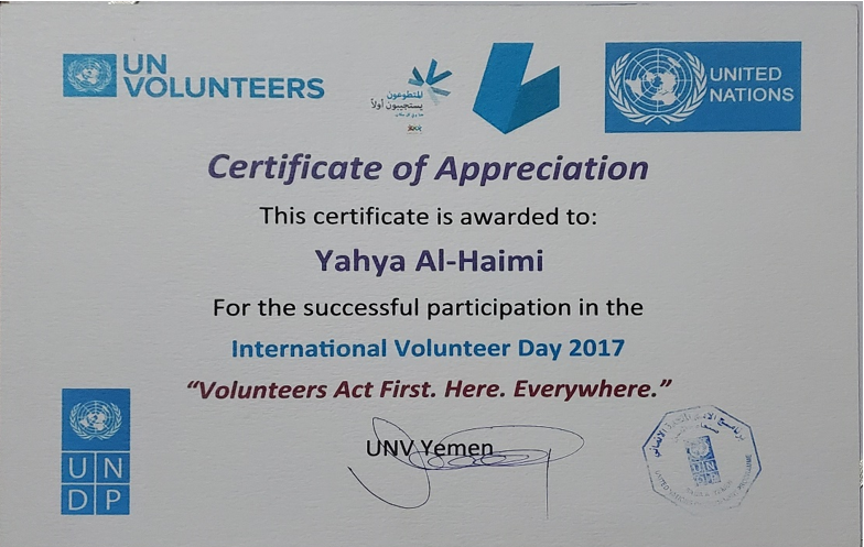 في الوقت الذي يفتقر فيه اليمن بشكل خاص والوطن العربي بشكل عام للعمل التطوعي مقارنة بدول العالم الأول، يظهر يحيى الحيمي مثالا بارزا على قدرة الشاب اليمني على ممارسة العمل التطوعي والنجاح فيه، دون أن تتأثر التزاماته الدراسية أو الأسرية.